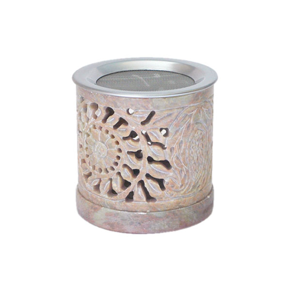 Räucherlampe Speckstein Blumenranke mit Sieb Höhe 10 cm Ø 9cm