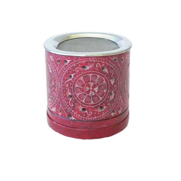 Räucherlampe Speckstein rot Soraj mit Edelstahl-Sieb 10 x 9 cm