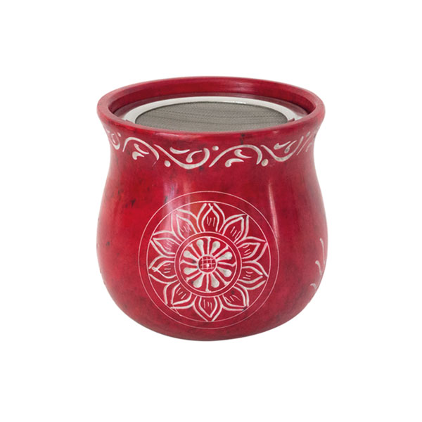 Räucherlampe Speckstein rot mit Edelstahl-Sieb 7,5 x 7,5 cm