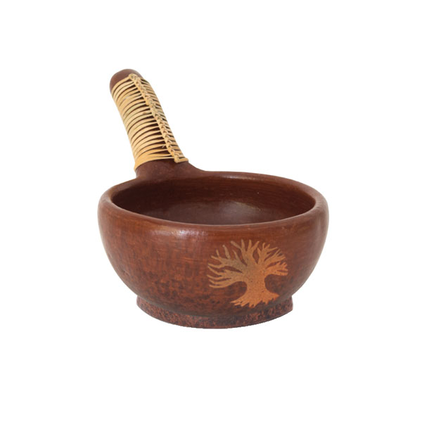 Räucherpfanne Ton mit Rattangriff braun mit Motiv Baum des Lebens L 17 cm Ø 10 cm